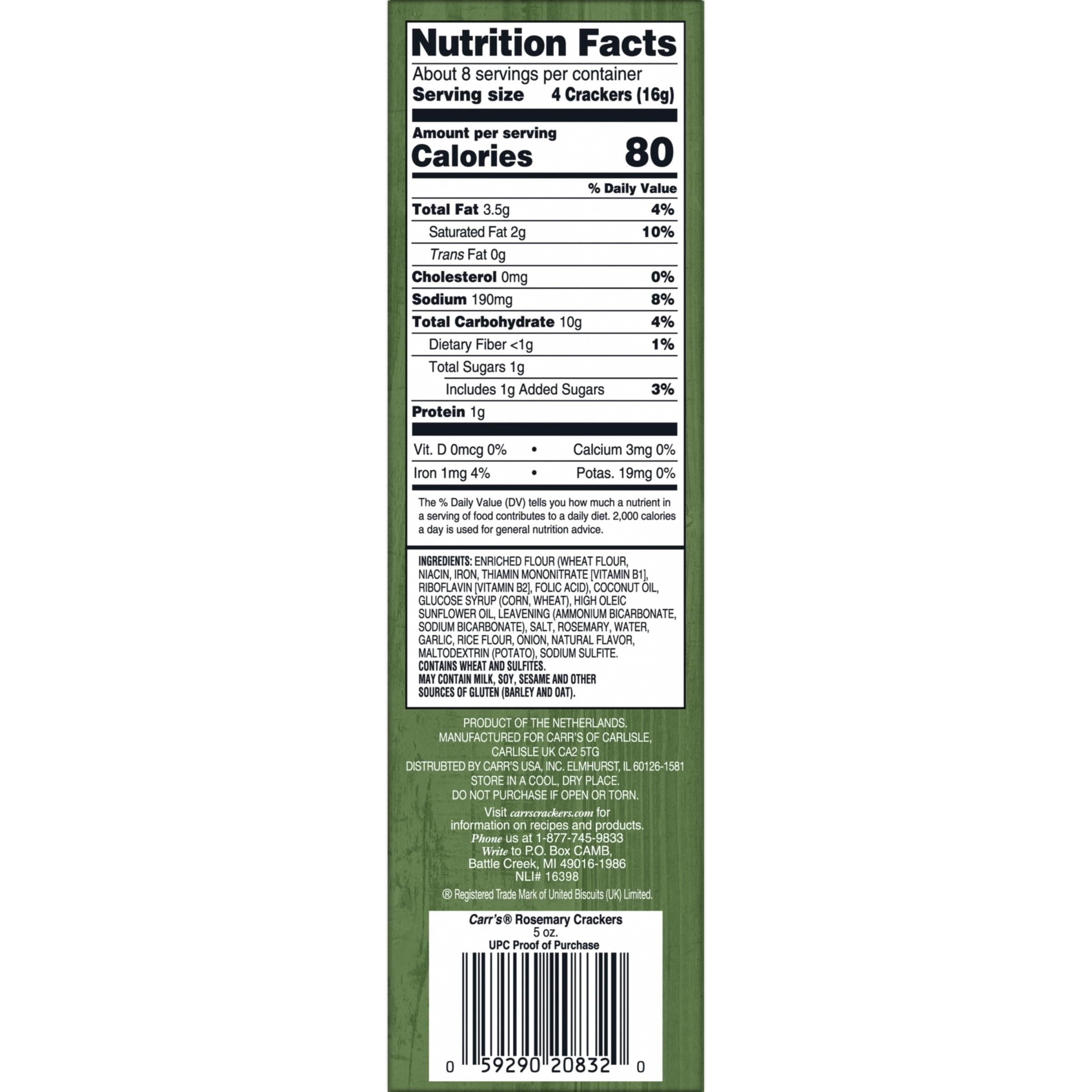 - A 5-ounce box containing Carr's Rich and Savor Rosemary Crackers; Packaged for freshness and great taste
